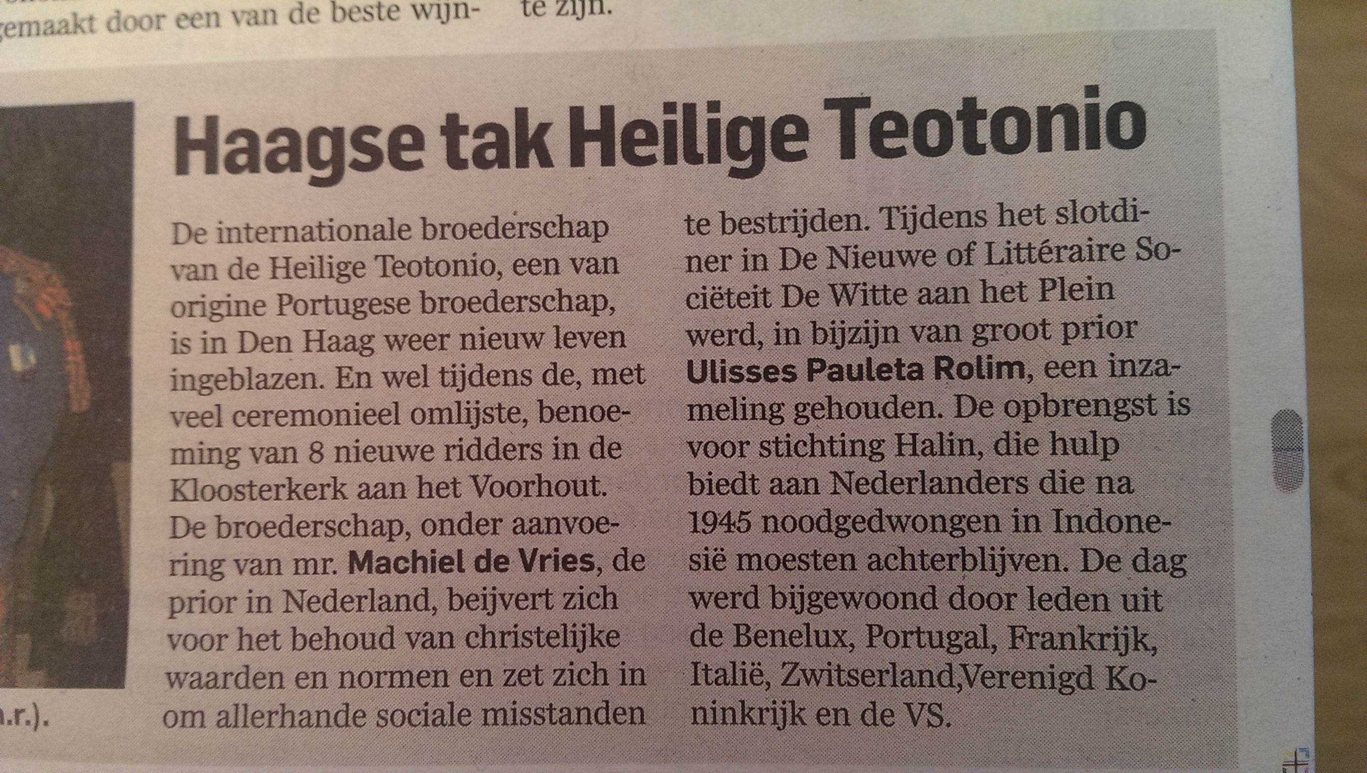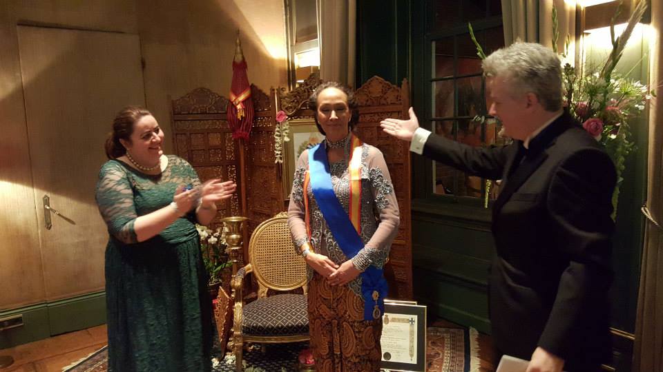 Ze maakte veel indruk tijdens een vlammende tafelrede die zij uitsprak tijdens het galadiner van de broederschap in Sociëteit De Witte op 3 oktober jl. De RCST steunt het initiatief van Raden Adjeng Donna van harte en om dat te onderstrepen heeft onze Groot Prior graaf Ulisses Rolim besloten om haar het ere-grootkruis in de Orde van Justitie van de Broederschap te verlenen.